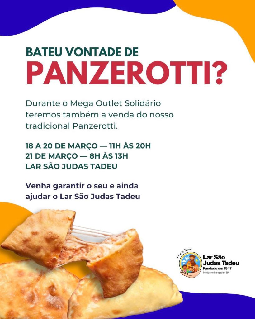 Cotidiano Mega Outlet Solidário do Lar São Judas Tadeu terá venda de panzerotti e arrecadação de doações Ler mais >> 18 de março de 2026