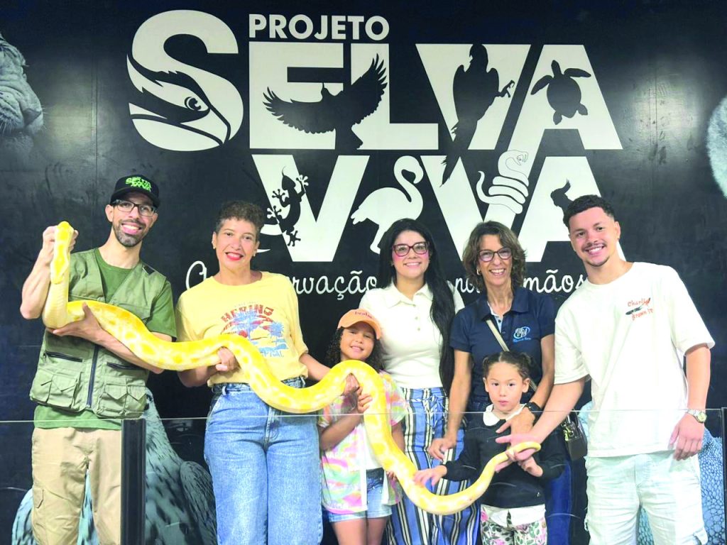 Outras atrações incluídas no ingresso também chamam a atenção, como o “Ponto Animal”, onde visitantes podem tocar espécies como cobra do milho, jabuti, gambá e lagarto dragão barbado, sempre sob orientação. Já na “Árvore da Vida”, insetos e anfíbios são apresentados em recipientes transparentes — e, no caso dos não peçonhentos, o público pode segurá-los.